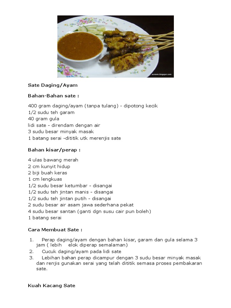 Resepi Satay Ayam Azie Kitchen Hirup B