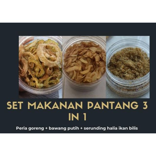 Set Makanan Pantang 3 In 1 Bawang Putih Goreng Peria Goreng Dan Serunding Shopee Malaysia
