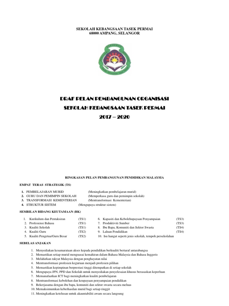 Pelan Pembangunan Pendidikan Malaysia 2013 2025 Smk Toh Johan Trong Perak