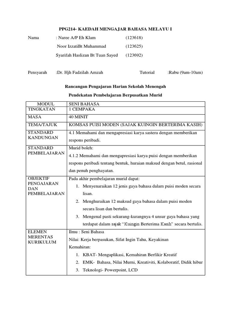 Contoh Soalan Komsas Tingkatan 1 Ke Purwosari X