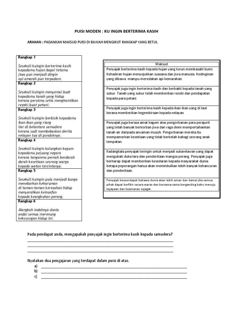 Share to twitter share to facebook share to pinterest. Persoalan kepentingan hujan kepada hidupan. Antologi tingkatan 1 kuingin berterima kasih pendeklamasi puisi moden direka cipta oleh myteach sdn bhd produk dalam bentuk powerpoint atm advanc. Share to twitter share to facebook share to pinterest.