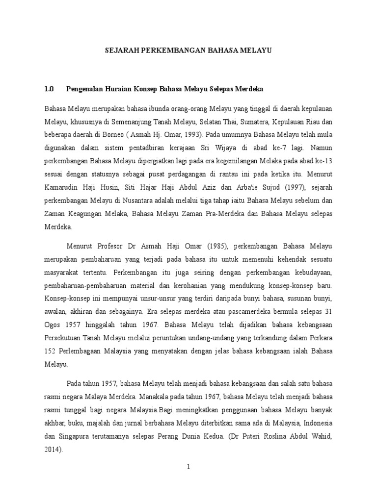 Doc Sejarah Perkembangan Bahasa Melayu Shabinar Abd Halim Academia Edu