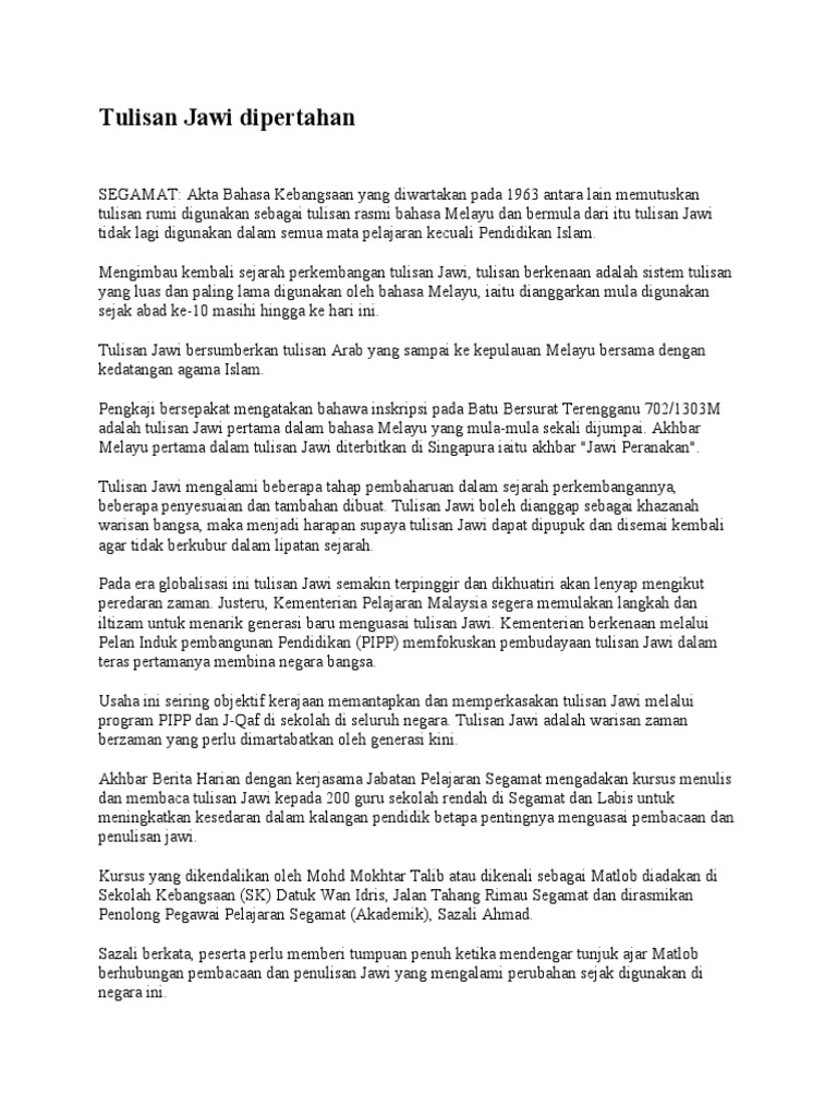 Doc Penjelasan Tentang Peranan Tulisan Jawi Shakir Aizat Academia Edu