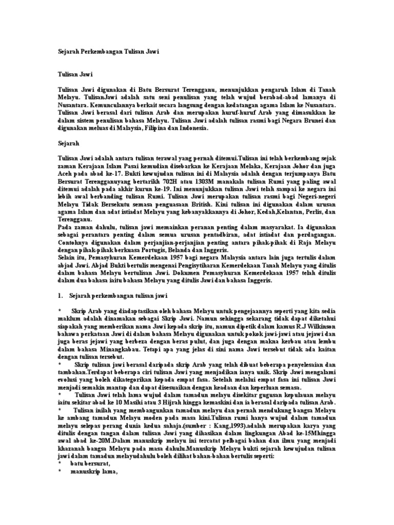 Sejarah Perkembangan Tulisan Jawi Analisis Pdf Document