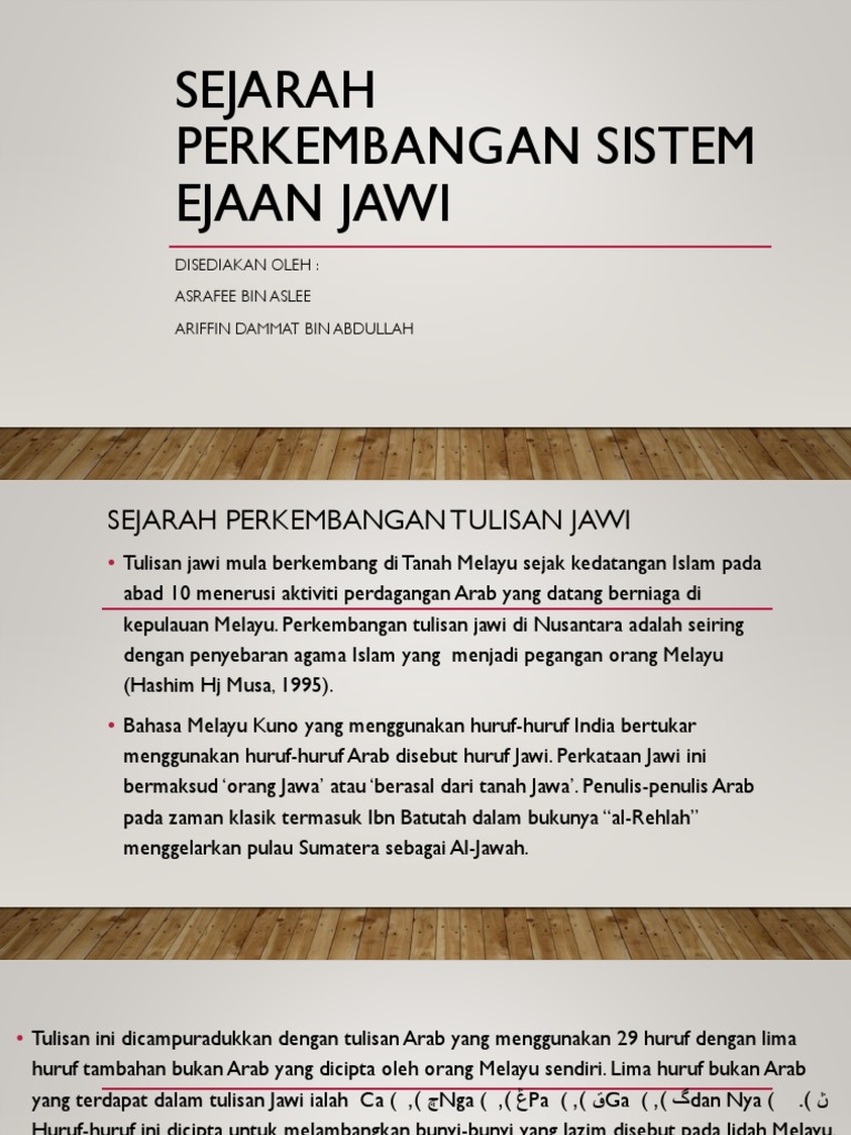 Sejarah Perkembangan Sistem Ejaan Jawi Pptx
