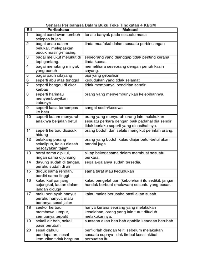 Senarai Peribahasa Dalam Buku Teks Tingkatan 4 2020