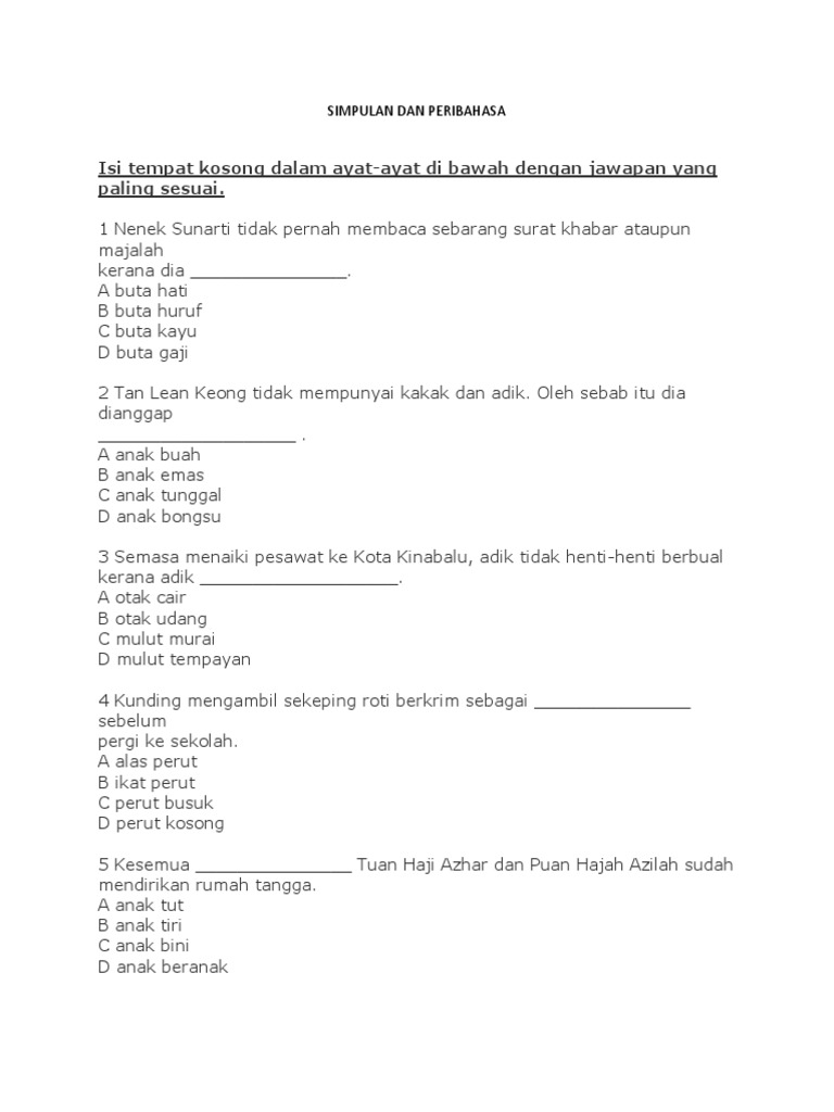 Latihan Simpulan Dan Peribahasa
