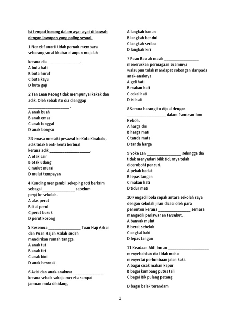 Peribahasa Muka Surat 2 Grammar And Vocabulary Malay Language Teaching Materials