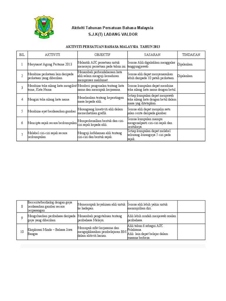 276437834 Perancangan Aktiviti Persatuan Bahasa Melayu 2015