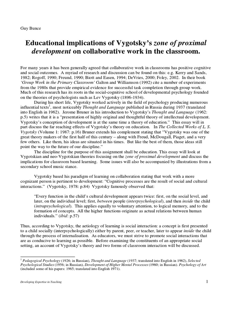 Vygotsky And The Classroom Pdf Music Education Neuropsychology